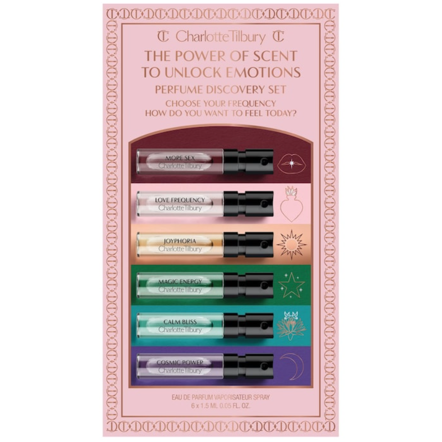 Descripción del conjunto: Descubre la colección de fragancias de emociones de Charlotte Tilbury con estos mini tamaños de prueba y elige la frecuencia que desees.