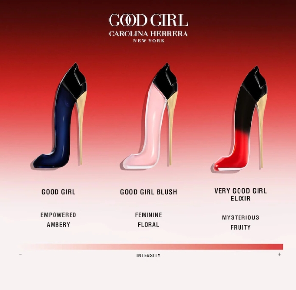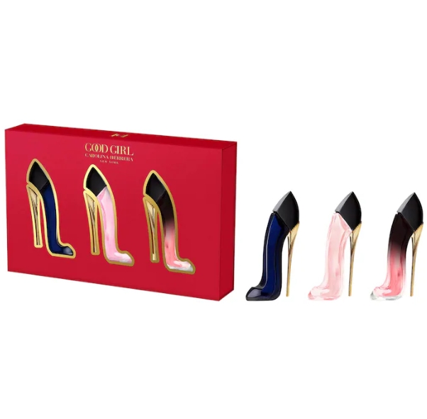 • 3 mini Eau de Parfum (7 ml c/u): Good Girl, Good Girl Blush y Very Good Girl Elixir.