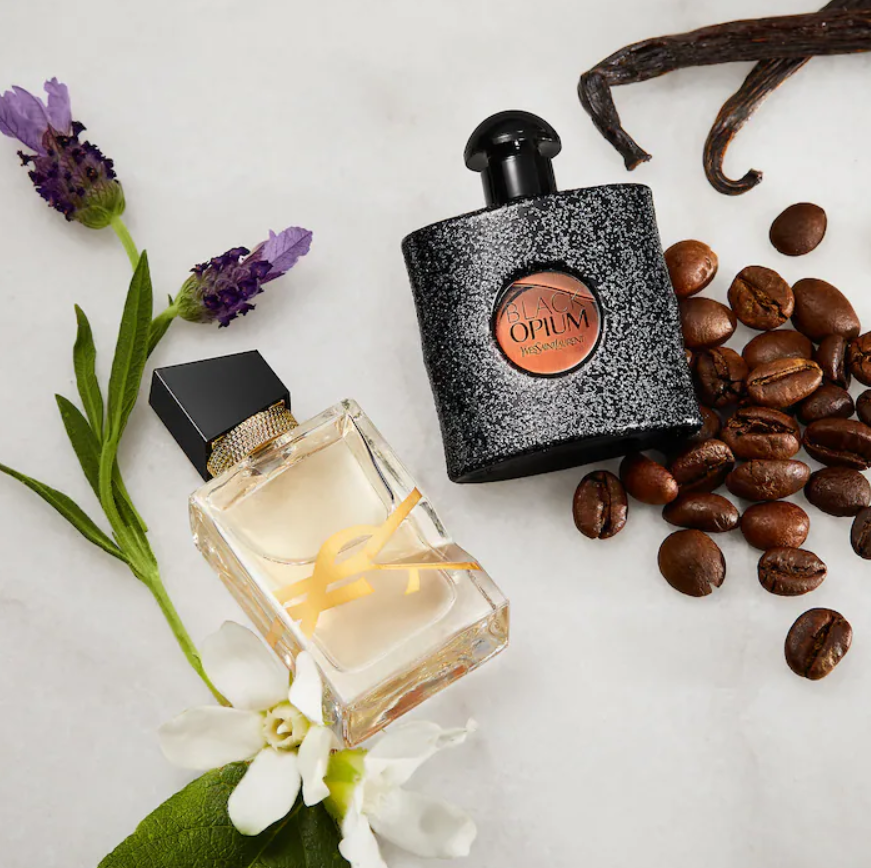 Acerca de la fragancia: Libre es una fragancia floral audaz y atrevida con notas de lavanda, azahar y acorde de almizcle, mientras que Black Opium es una fragancia seductora, cálida y especiada con notas de café, flores blancas y vainilla.