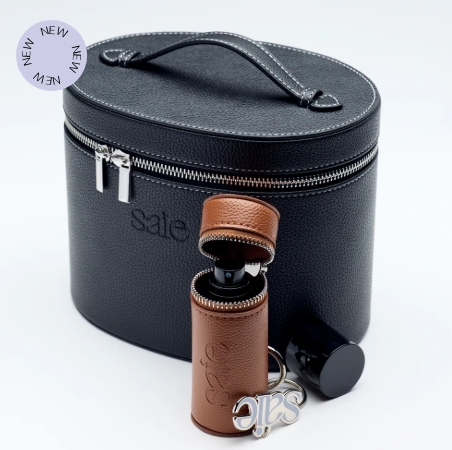 Lleva tu Mini CitySet™ contigo a donde vayas con este mini estuche con llavero. El estuche Mini CitySet™ está inspirado en nuestra colección más vendida, Vanity Case, y cuenta con un cierre con cremallera, un clip redondo para llavero y el clásico logo de Saie en relieve.