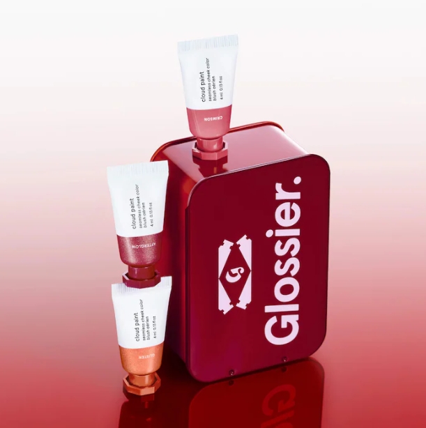Qué es: Un trío de rubores Cloud Paint: dos con un nuevo acabado luminoso y uno clásico en tono malva, todos presentados en una lata coleccionable con diseño inspirado en las fiestas.