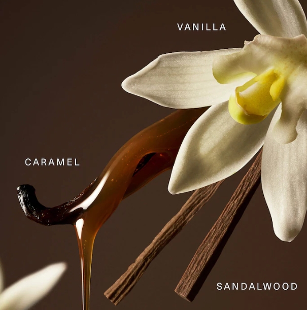 Descripción de la Fragancia: Cálida y decadente con un toque de especias, esta fragancia gourmand evoluciona con cada momento que pasa, perdurando hasta 12 horas. El caramelo y el pistacho dan paso a la rica vainilla y el jengibre picante, luego se secan hasta convertirse en sándalo terroso. Combina el Eau de Parfum con los bálsamos de capas de fragancias raras para personalizar tu aroma.